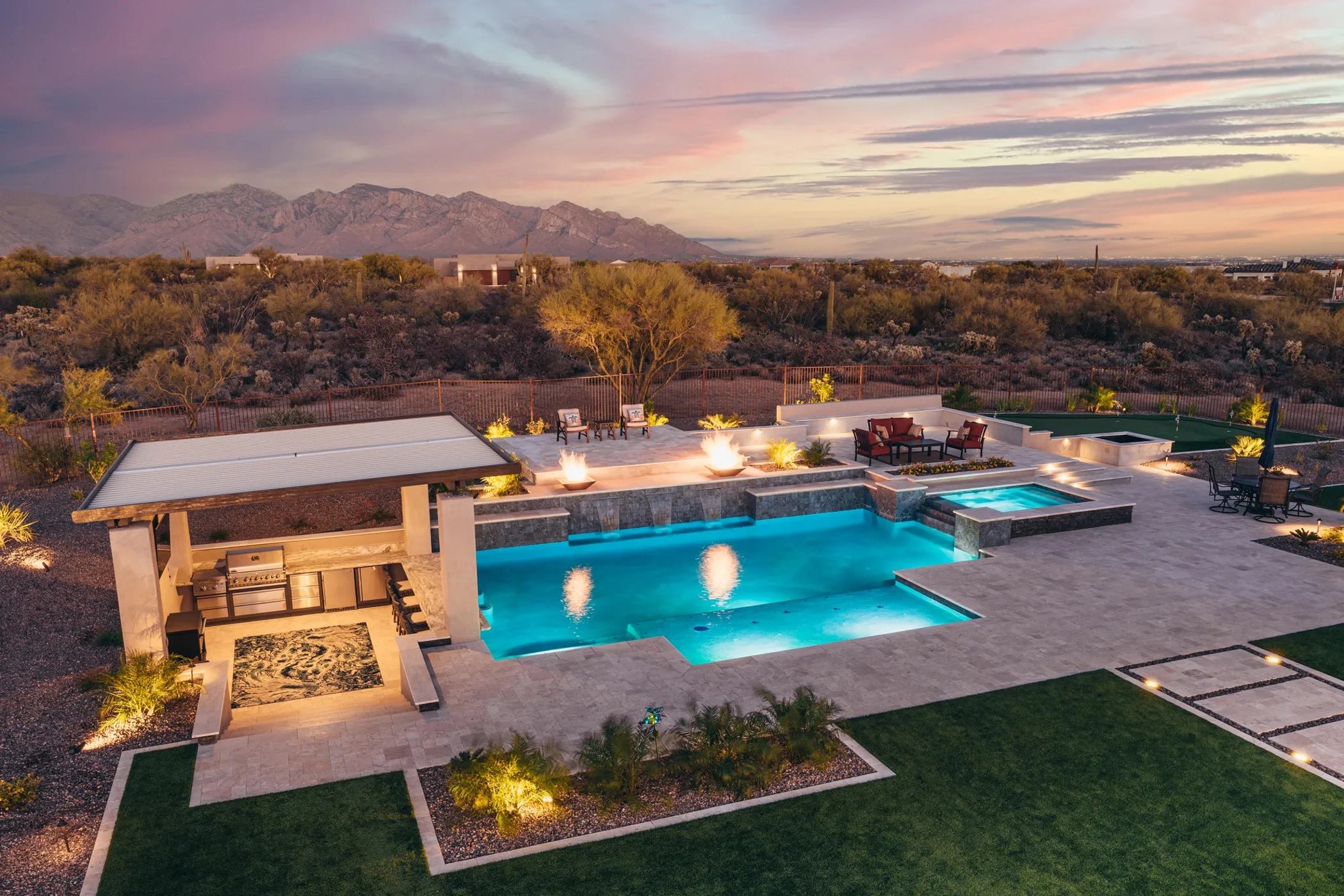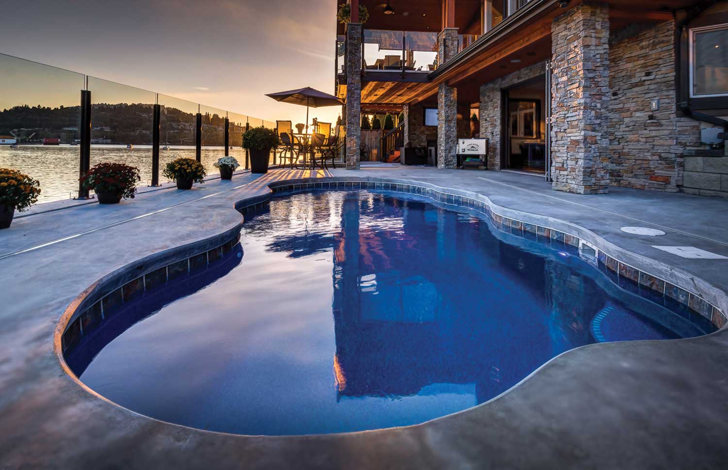 We design and build custom concrete pools, fiberglass pools, and spas, then shape the surroundings—landscaping and outdoor kitchens—so everything works as one. From first sketch to start-up and owner training, our team handles the details, timelines, and care—so the water’s always ready when you are.